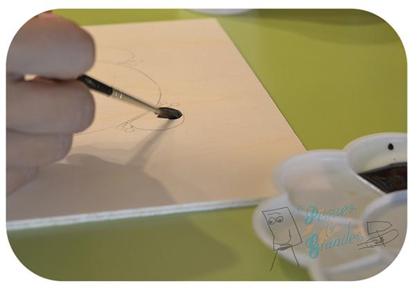 Una vez pasada nuestra muñeca a la tablilla empezamos con el color. Hemos usado pintura acrílica.