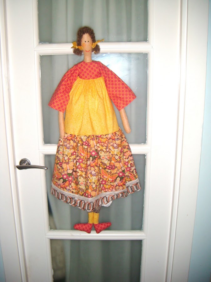 Vestido de punto con algodón y puntilla de tul. Las flores son de crochet aprendidas del blog de tejiendo Perú. A mi brujilla le queda muy muy mono.