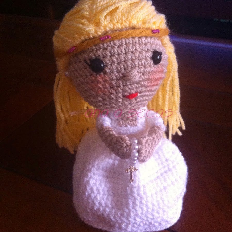 Aquí os presento una de mis muñecas de comunión, que al parecer han gustado mucho.