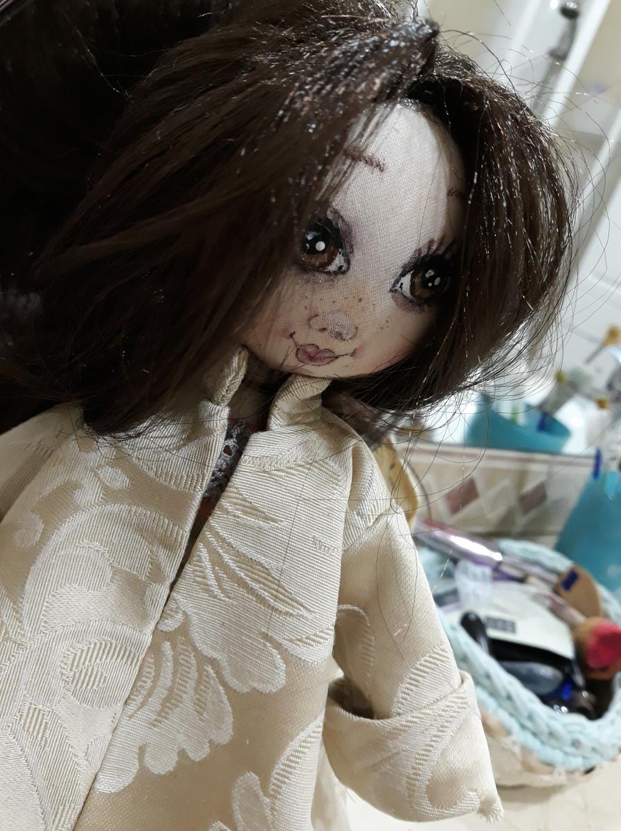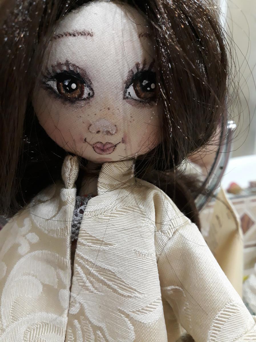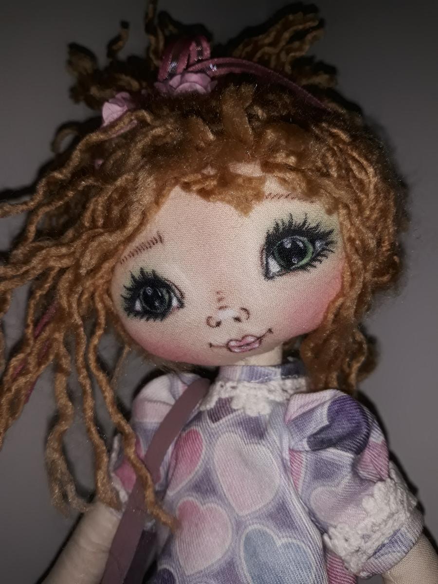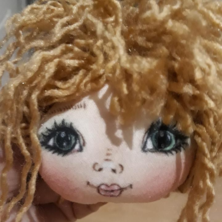 Muñeca de trapo de Celia, carita pintada con pinturas pastel