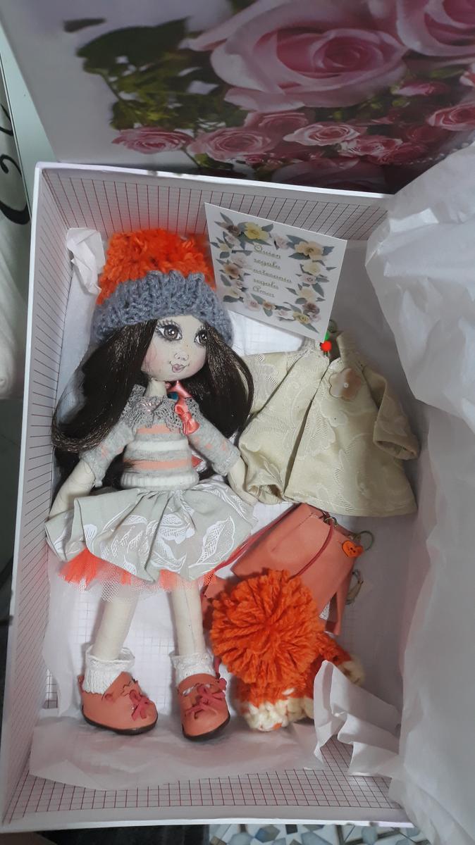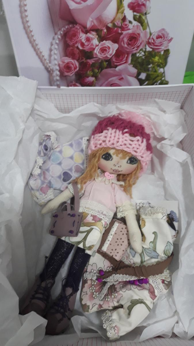 Muñeca de trapo de Ana, preparada en su caja para ir con Ana