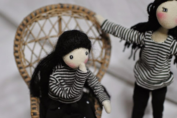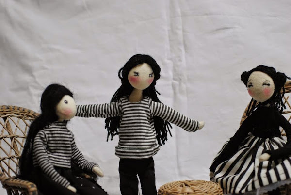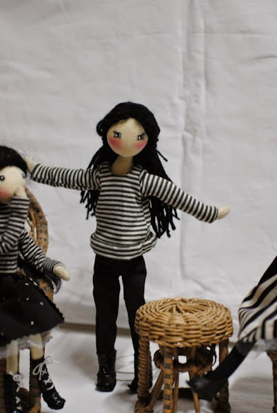 He confeccionado esta serie en un estilo un poco Tim Burtom , segun mis hijos dicen , con diferentes expresiones y estilos , me resultan de lo más cómicas, y lo mas simpático es que cuando las estaba haciendo, dando un pasein por un pueblo de aquí cerquita encontré estas sillas y la mesa en un anticuario , y pensé vamos que ni buscándolas , a si que para casita con ellas para dar forma a mi reunión de amigas.