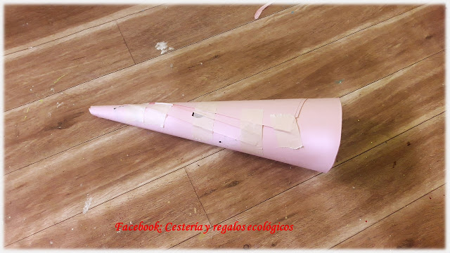 Forramos el cono con algún retazo de tela que tengas o alguna prenda de vestir que ya no uses..