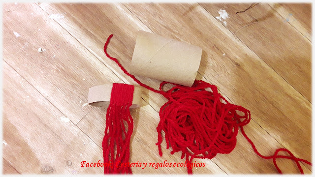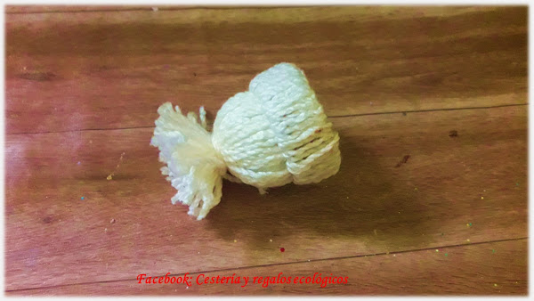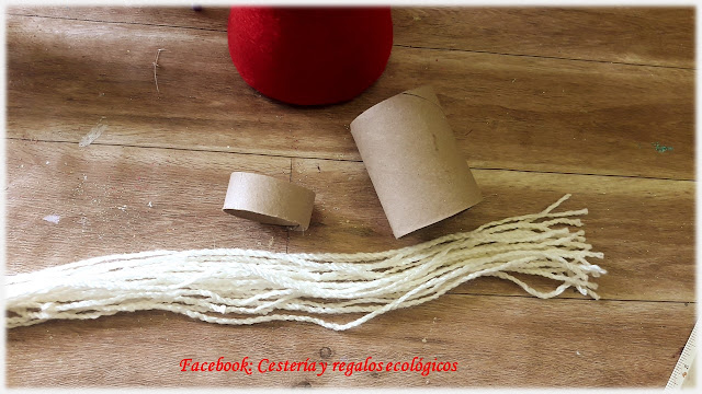 Y el gorrito también es sencillo de hacer, como base utilizamos un aro sacado de un tubo de cartón de papel higiénico o de los que vienen en las servilletas de papel de cocina...