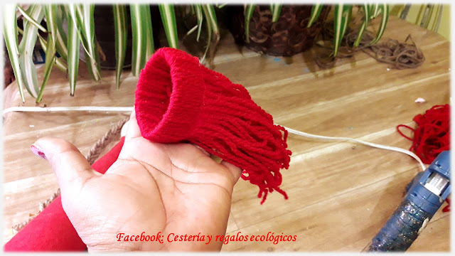 Las trenzas las formamos con restos de hilo de tejer grueso o estambre, se requiere muy poco...
