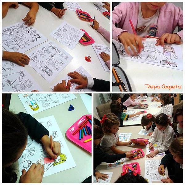 Pero esta vez, salió alguna "rebelde" que sólo quería pintar dos o tres modelitos de la muñeca... en fin, tendrán menos ajuar... jejeje. Luego las recortaron, pero este año, que han sido más rápidas, porque sólo necesitaron un día para la actividad, no les dio tiempo a jugar, eso sí, se las llevaron en un paquetito, esta vez con su nombre y apellidos, nada de otro nombre para la muñeca como el año pasado...