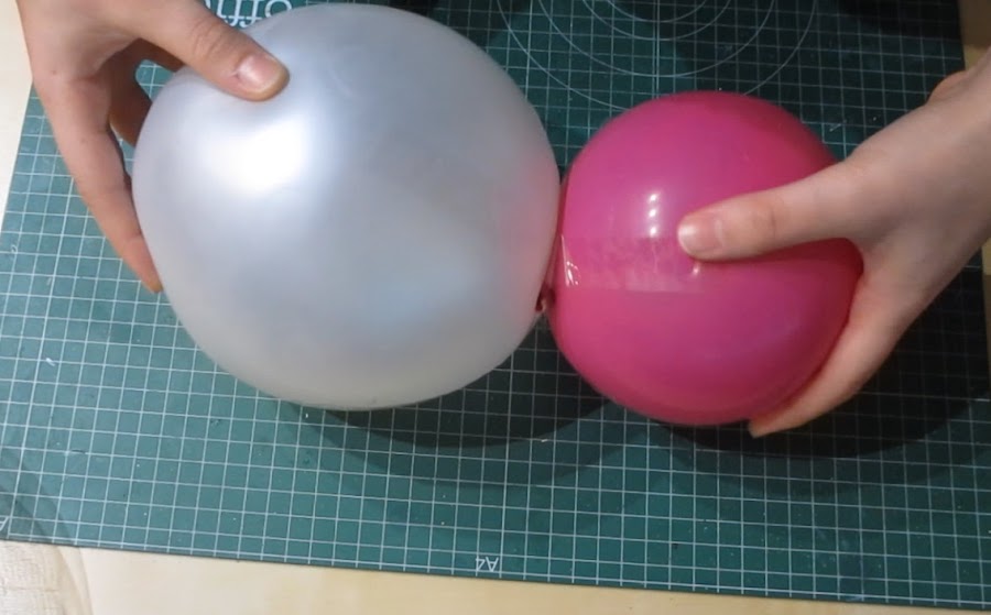 Inflamos los dos globos, uno más pequeño (la cabeza) y otro más grande (el cuerpo), y los unimos con celo.