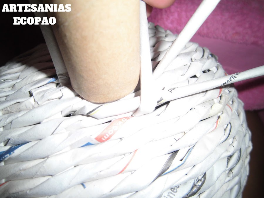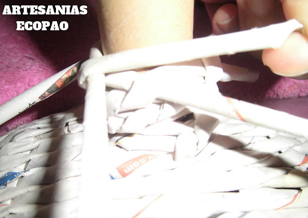 Después de 4 vueltas, esconde los rollitos y has un redoblaje, pasando un rollito por dentro del siguiente y aplica pegamento.