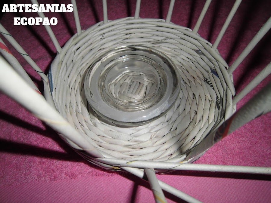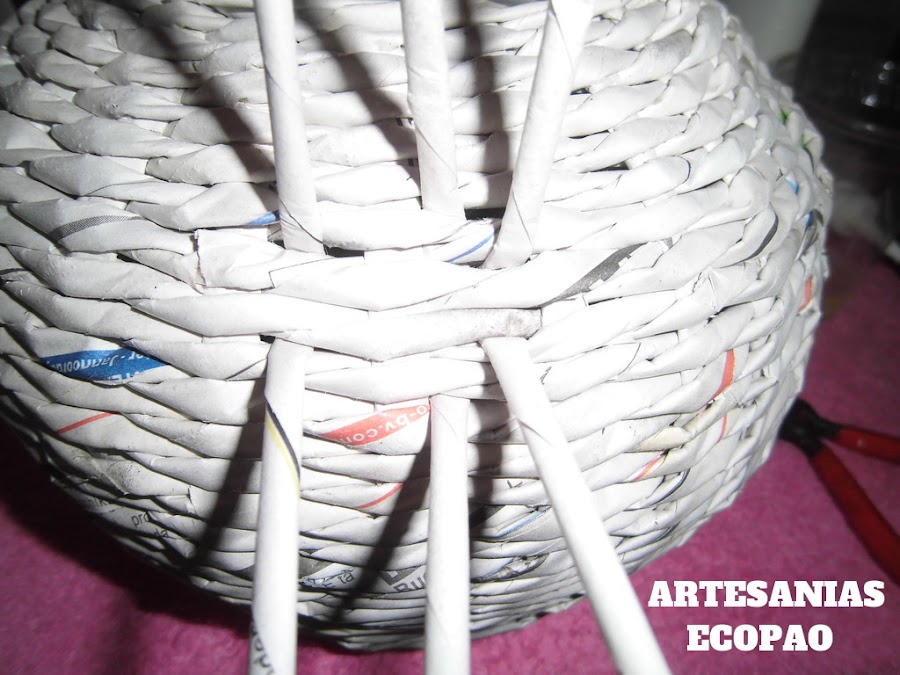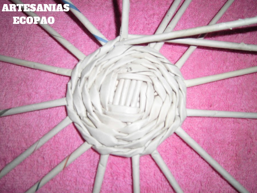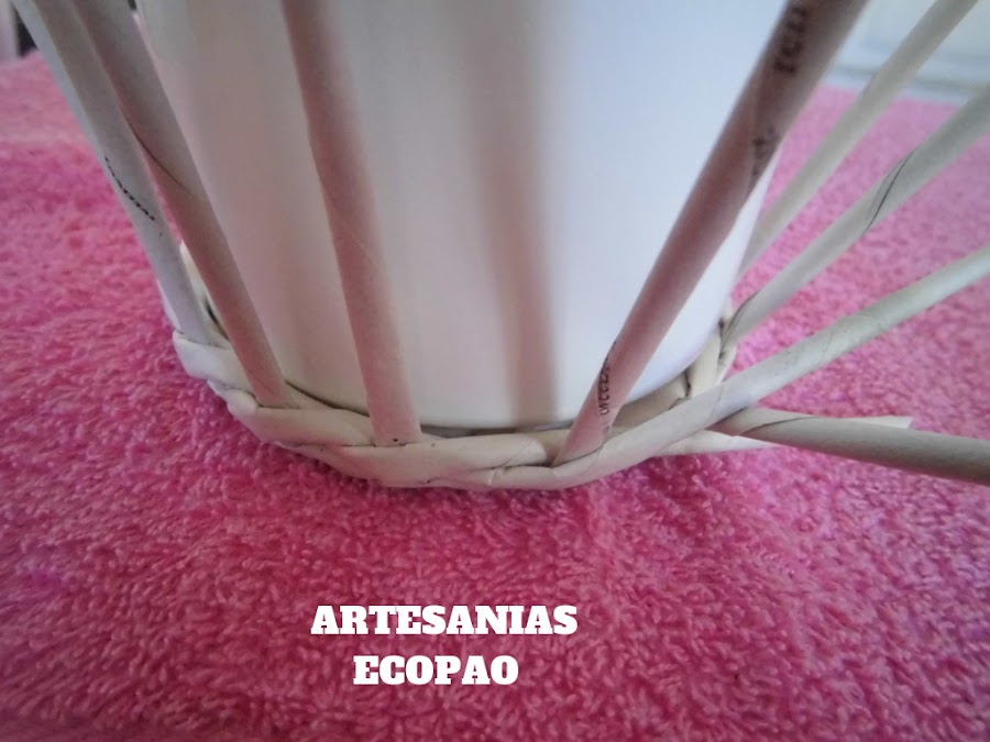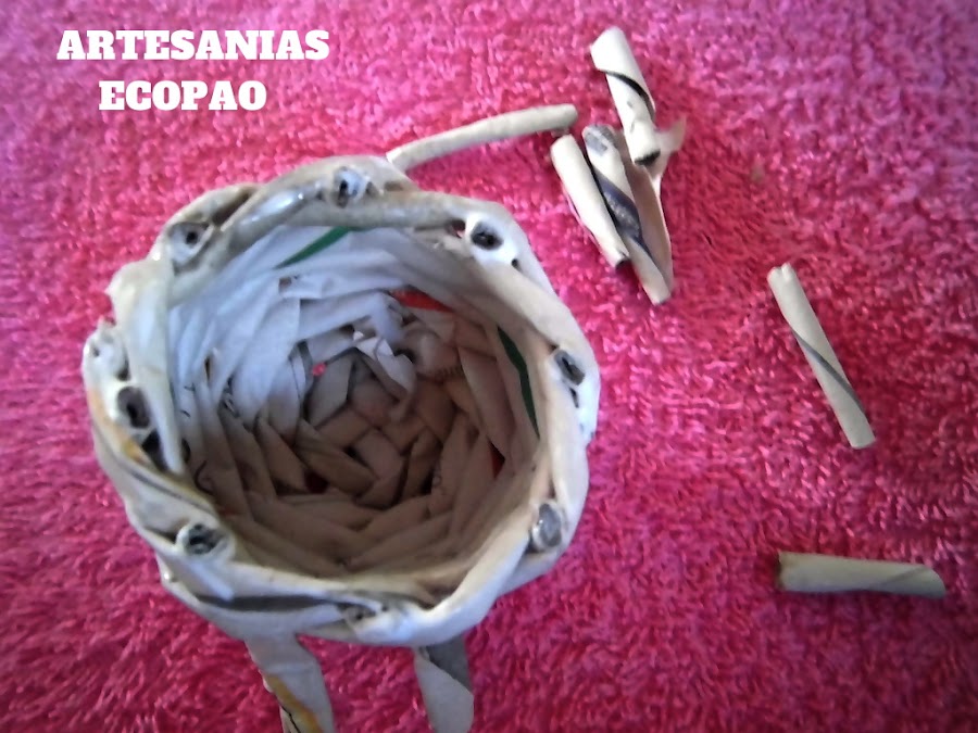 Has el tejido en espiral, tomas un rollito y lo pasas al lado del siguiente.