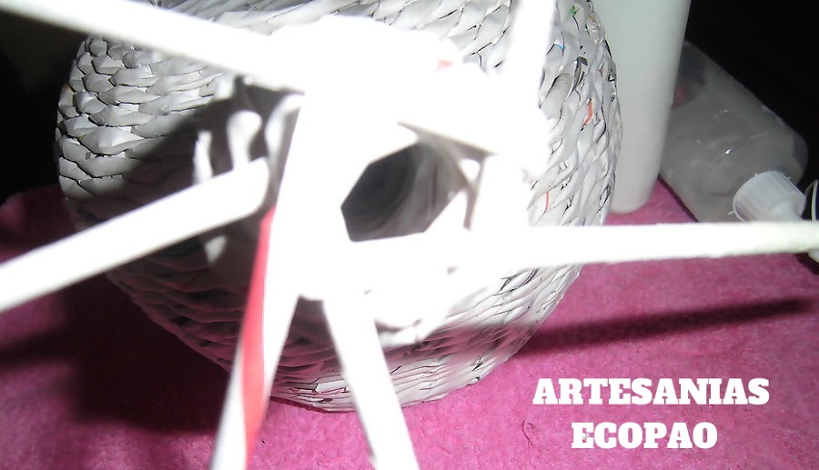 Corta los rollitos sobrantes y aplica pegamento. Si gusta puedes hacer el redoblaje que prefieras.
