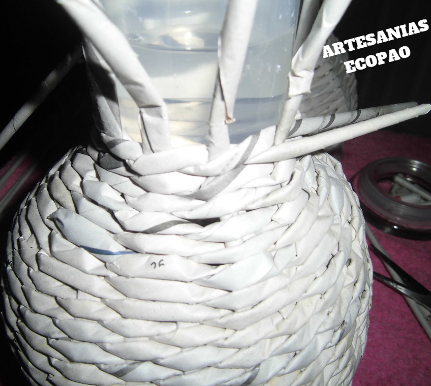 Ves cerrando poco a poco el tejido y cuando quedes conforme con la abertura, corta los rollitos y pega. Puedes ajustar con ganchitos mientras seca.