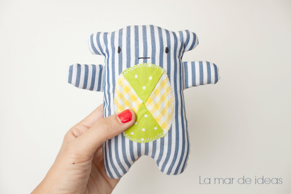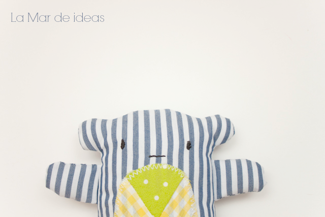 Si tú también quieres hacerle uno a tu peque, lo mejor es hacerlo con tela de algodón y todo cosido, ojos incluidos, sin ninguna pieza de las pequeñitas, así no hay peligro y lo puede manosear y ya sabes que todo lo que cae en las manos de los peques va a la boca. María fue lo primero que hizo en cuanto cayó en sus manitas :)).