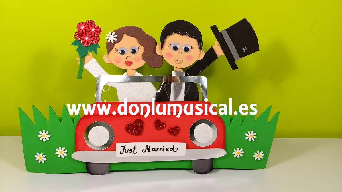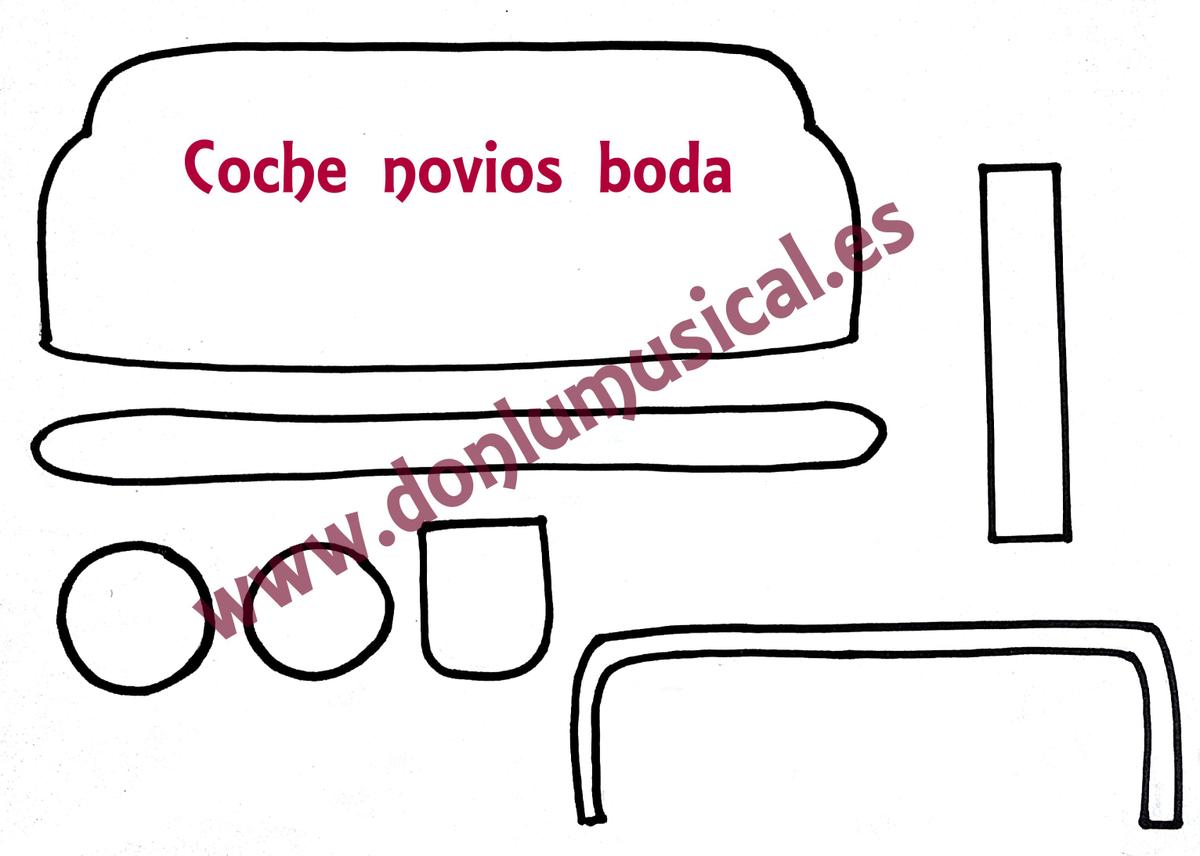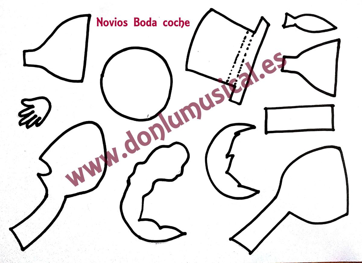 Aquí te dejo las plantillas para que puedas recortar todas las piezas necesarias para hacer el coche y los novios.