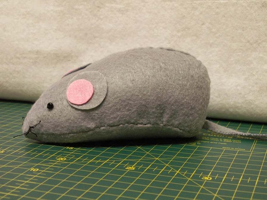 Y por último os muestro a este pequeño ratón. En este caso yo lo he hecho en gris, el típico color, pero queda genial en colores mas disparatados, como rojo, azul o morado... para crear toda una camada de pequeños ratoncitos.