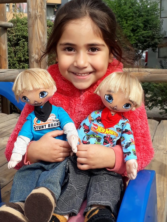 MUÑECOS GEMELOS en BASE A FOTOGRAFÍA, 45 cms ALTURA