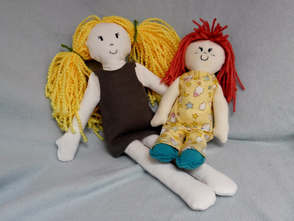 De las muñecas de trapo, la del pelo rojo la hice según explican en la revista Muñecas, de la editorial EuroMalta. En cambio del patrón de la muñeca rubia lo hice yo misma, ya os lo colgaré en un futuro post.