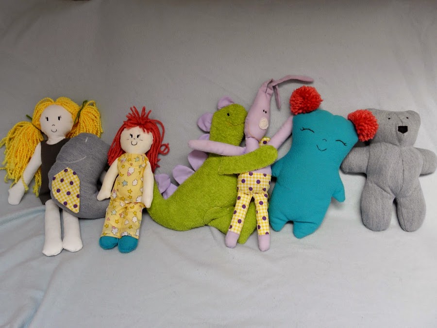 Para los muñecos de la siguiente imagen conseguí los patrones del libro Muñecos de tela para los más pequeños, de Bettina Schons, publicado por la Editorial DRAC. En el encontrareis un montón de ideas para diferentes muñecos monísimos, a mi realmente me enamoraron en cuanto los vi.