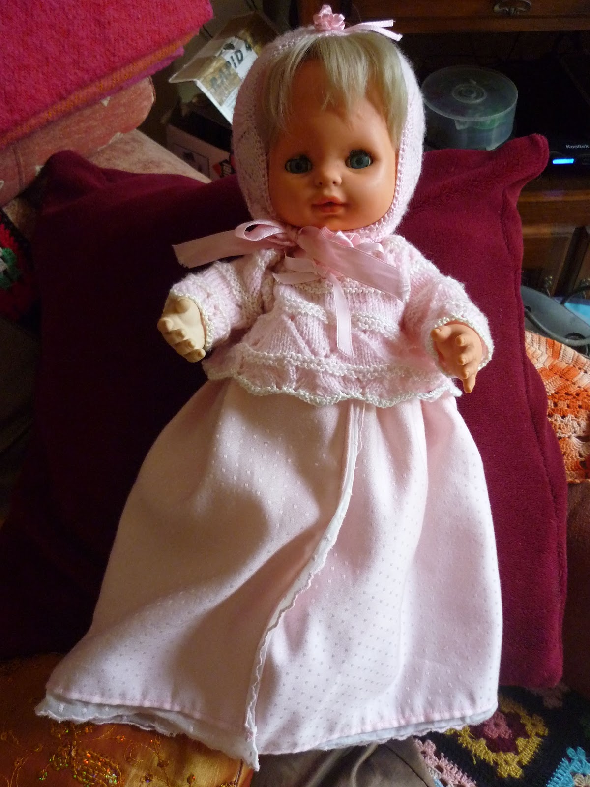 La muñeca tiene casi 40 años. Es un baby Mocosete que me regaló mi abuela cuando niña y la ropa la hice para un nenuco de mi hija que vete a saber dónde está enterrado...