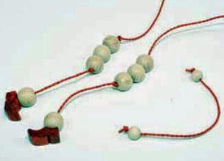 -->Para hacer las manos del muñeco. Hacemos un nudo al inicio de la cuerda y metemos una cuenta, volvemos hacer un nudo para cerrar ,en el otro extremo de la cuerda repetir el mismo procedimiento.