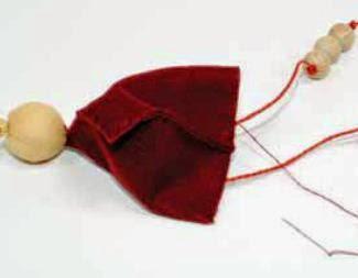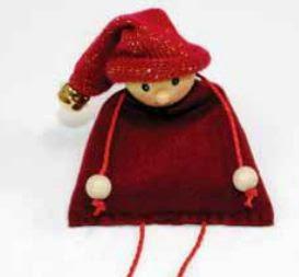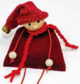 6.-Para hacer el gorro del muñeco Navideño patas largas, solo tienes que coser en forma tubular un retazo de tela de punto y en la punta del mismo coser un cascabel.