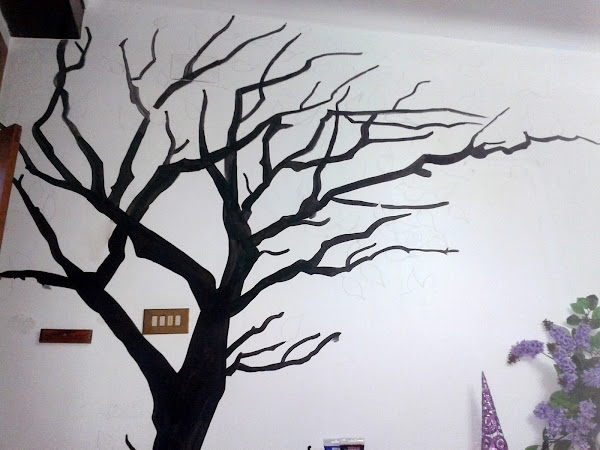 El dibujo/muestra la he sacado de internet, podeis encontrar un montón de páginas en google buscando vinilos/stickers/murales. Tras ver un montón de páginas, de árboles de todo tipo y marearme un montón...me decidí por un diseño de "the Kinky Wall".