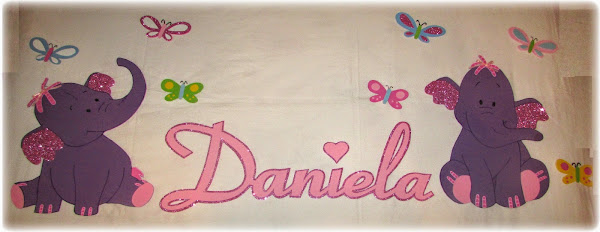 Os enseño por partes un mural que acabo de terminar para decorar la pared de la habitación de Daniela, y en la última foto como quedaría todo en la pared. Los elefantes miden 40 cm de alto x 30 cm de ancho, el nombre 20 cm de alto x 50 cm de ancho y las mariposas, aproximadamente, 10 x 10 cm y de 7 x 7 cm.