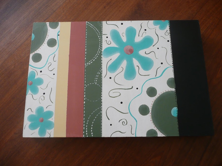 Esta semana aparte de estar preparando mis trabajitos para los retos amistosos estuve pintando un mural retro que me encargaron para la habitación de una adolescente, no sabía muy bien cómo hacerlo ya que lo único que me dijeron era que tenía que tener rayas y flores, por lo tanto después de mostrarles algunos diseños eligieron este