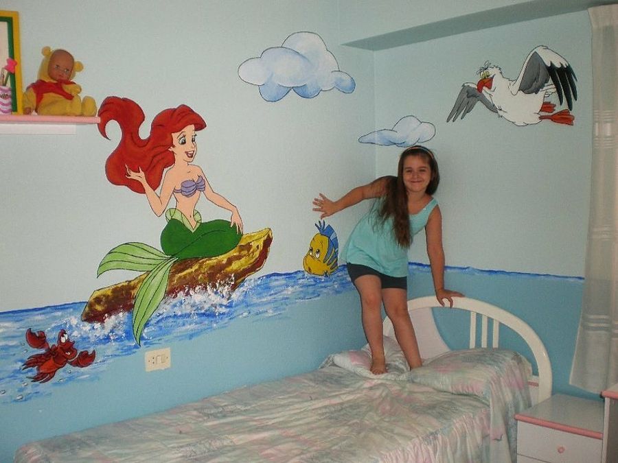 La habitación de la hija de Ramy se abre al mundo fantástico de la Sirenita, en una escena sensacionalmente pintada por su mamá. ¡Cuántas aventuras imaginará una niña ante ese inolvidable rincón!