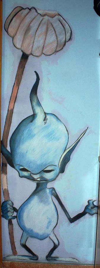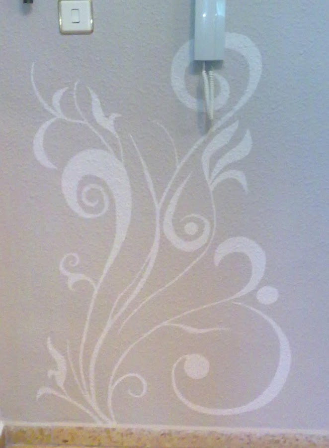 Este otro lo hice en la entrada de casa un día que me aburría y no sabía qué hacer. En lugar de comprarme esos vinilos que venden para decorar las paredes lo hice diréctamente con pintura.
