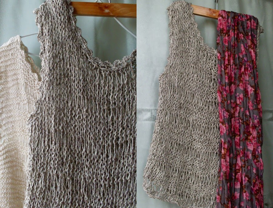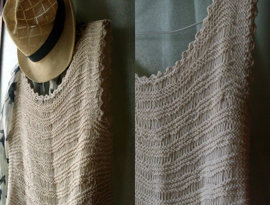 Me entusiasmé tejiendo unas musculosas en hilo con dos agujas,