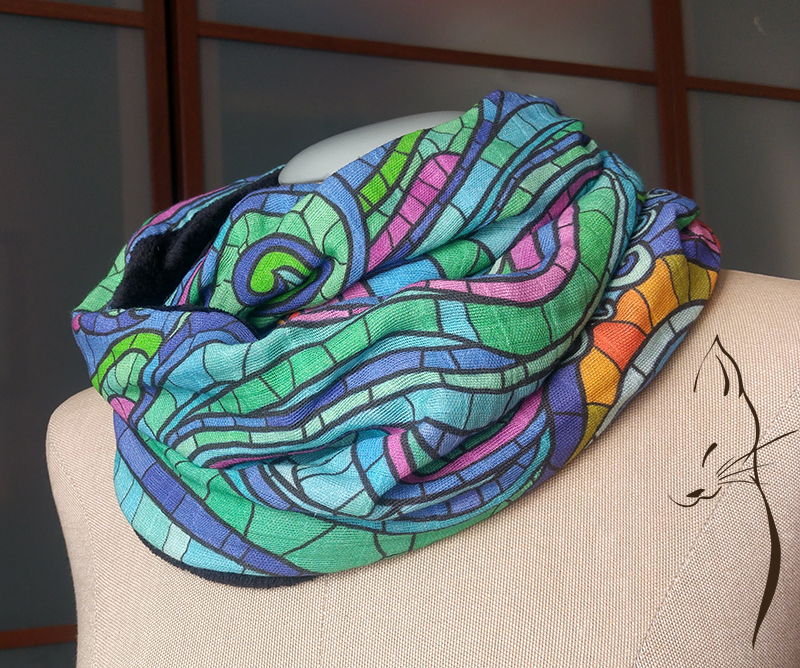 Así que tras mi cuello de bulldogs (tengo uno sólo en muselina y otro de muselina con coralina), me volví loca buscando muselinas estampadas.
