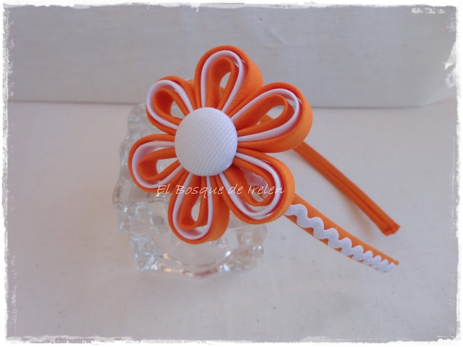 Diadema flor bies en naranja y blanco con base naranja y piquillo