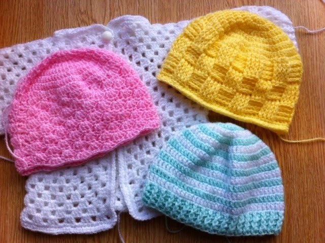 Finalmente les comparto la foto de unas prendas que hice para una donación en un hospital, la verdad que me hubiera gustado hacer algunas mas pero hubo poco tiempo para tejer y las tallas se me complicaron un poco ya que nunca había hecho nada para un bebé jaja. :)