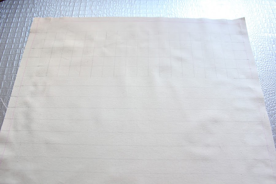 He dibujado una banda que mide 2,5 cm de alto en la parte superior y otra en la parte inferior de la tela.