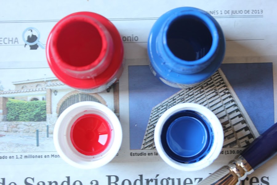 ? Pintamos una a una las bandas (que no tienen cinta adhesiva) con una primera capa de pintura roja y dejamos secar durante 1h.