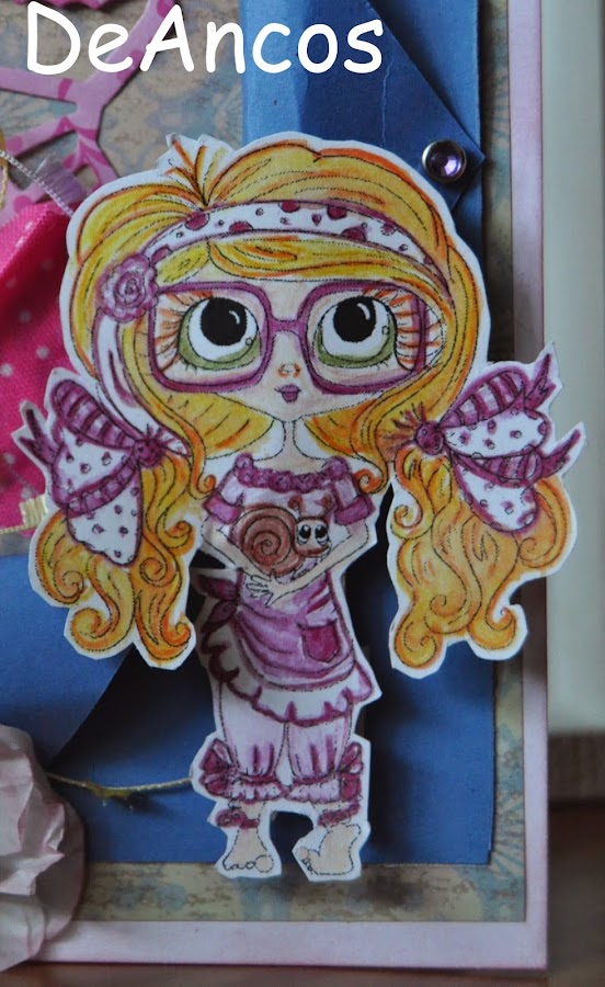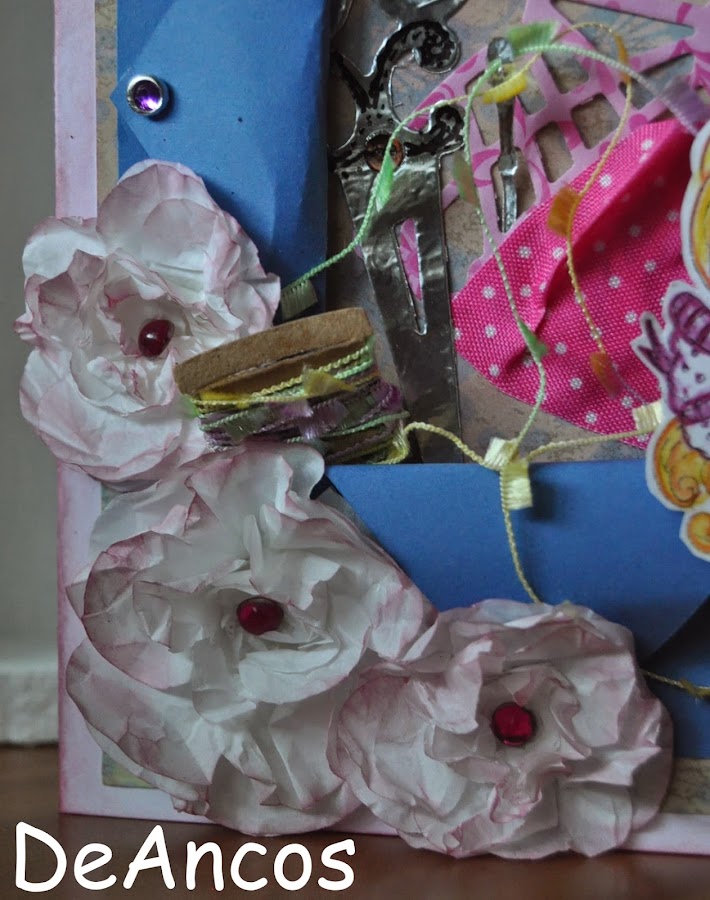 Estas flores que hice yo misma, están entintadas igualmente con la Victorian Velvet y con su perlita rosa para rematar su decoración.