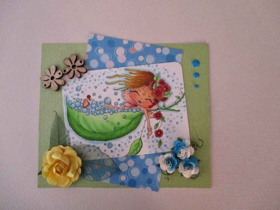 El tema de esta semana es " El jardín", y esta es mi interpretación, una hermosa y simpática hada, bañándose en una hoja, no me diréis que no es una preciosidad. Venga animaros!!!