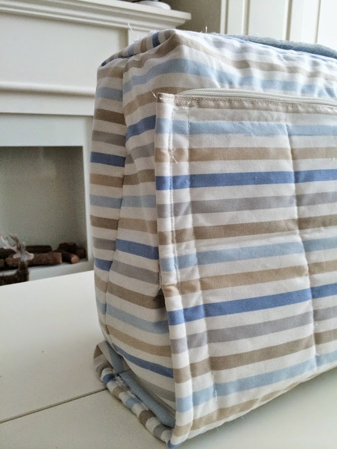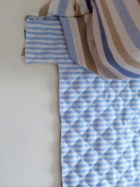 - tela tipo loneta o piqué (mejor acolchada); yo puse una loneta de rayas por fuera y por dentro un piqué acolchado.