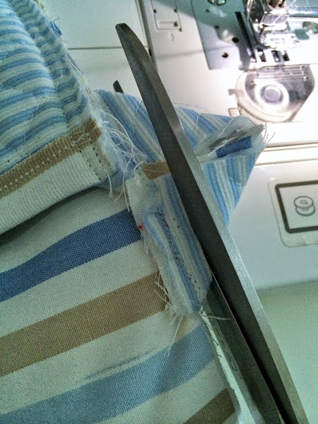 Marcamos con un hilván esos dos picos triangulares que quedan y pasamos pespunte