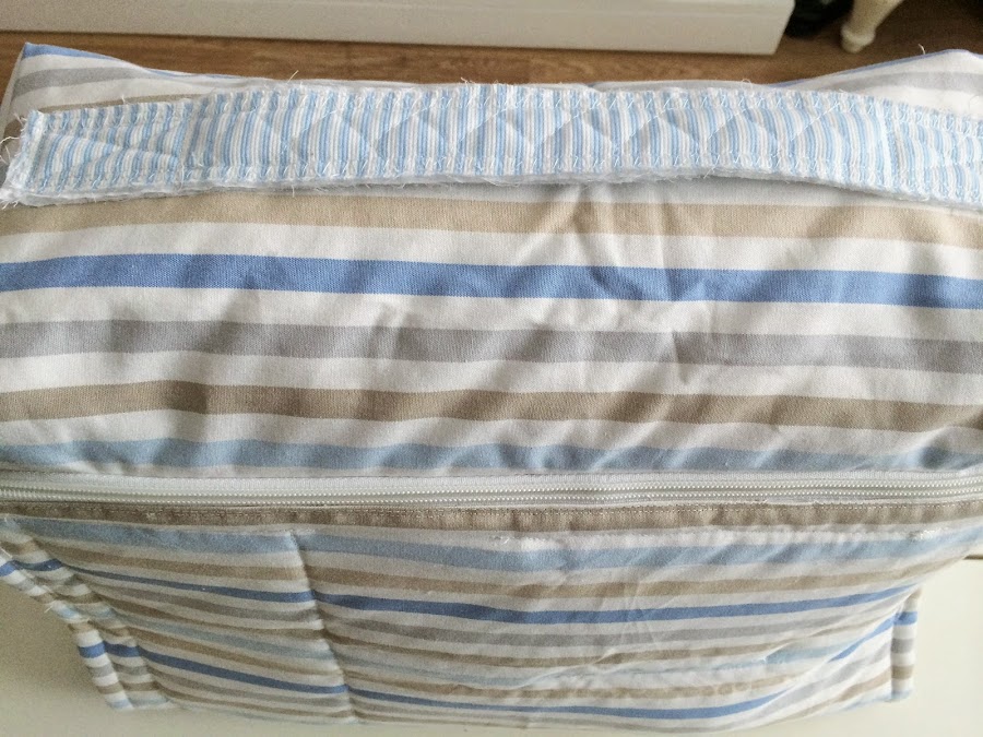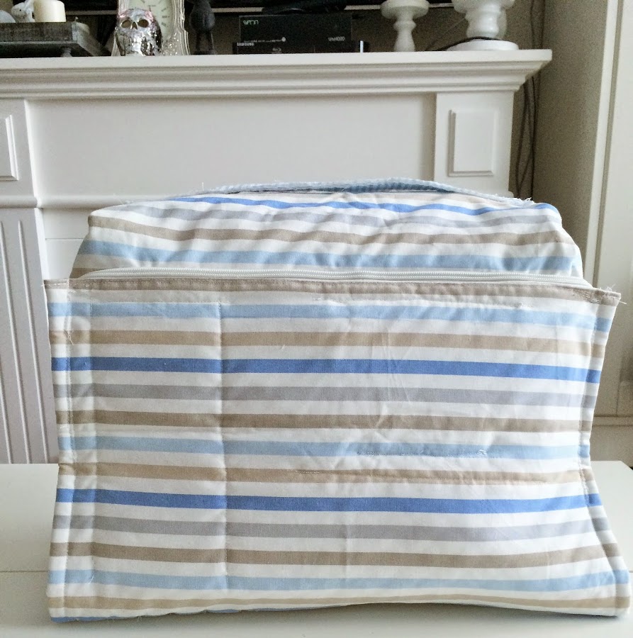 La cremallera la puse al final del todo porque en un principio ni sabía cómo la iba a cerrar ni tenía medidas exactas como para saber dónde ponerla. Así que la hilvané una vez acabada la funda y luego la cosí a máquina.