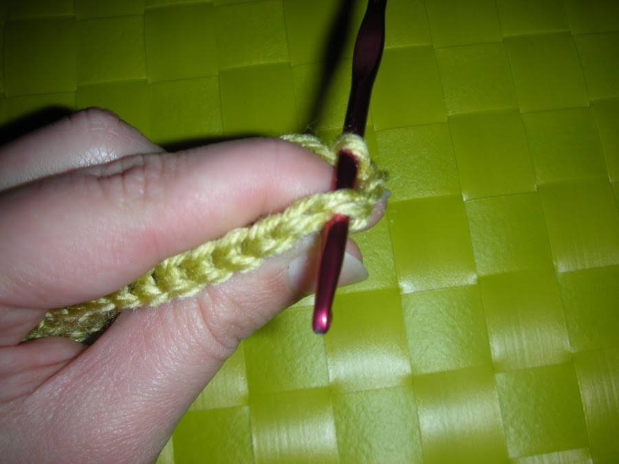 Para comenzar, cogemos la madeja amarillo maíz que nos han entregado con el fascículo y con el ganchillo Nº4, dejándo unos 15 cm de hilo desde el extremo, hacemos el nudo corredizo y montamos 27 cadenas en la cadeneta base.