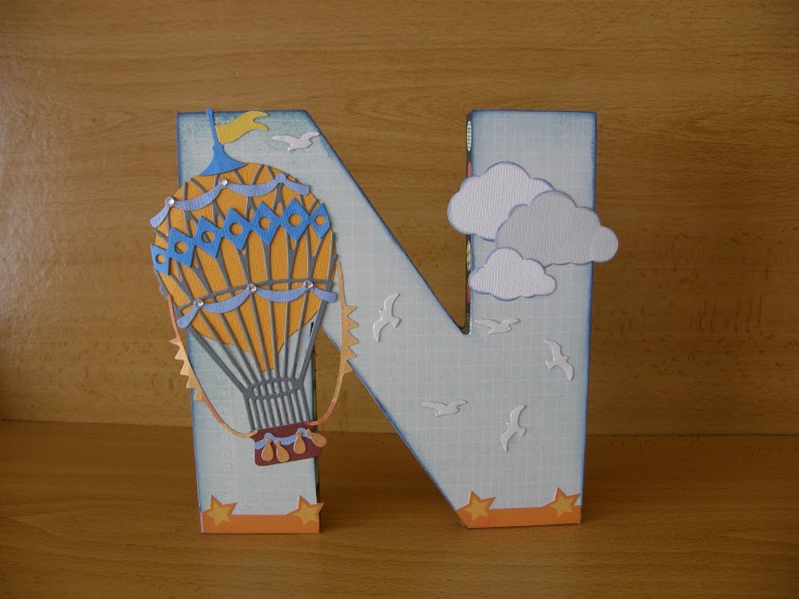 En Candas mis hijos tienen dos buenos amigos, Nel y Telva, son también mellizos y de la misma edad, este año cuando se volvieron a ver querían darles un regalito y el regalo del año han sido la letras decoradas. La de nel es un globo para dejarse llevar flotando todo lo lejos que nos deje la imaginación.