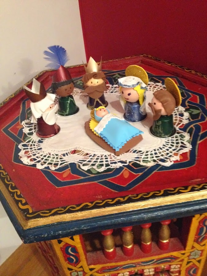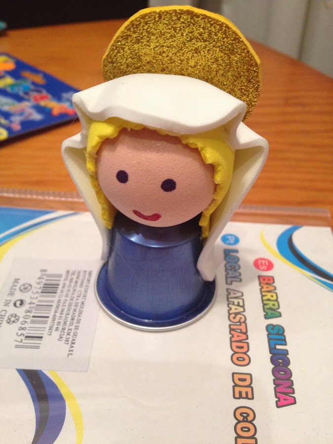 Vamos a completar nuestro nacimiento, hecho con capsulas Nespresso y con restos de goma eva, tras hacer los Reyes Magos, siguiendo la misma técnica, vamos a hacer la Virgen María, San José y el niño Jesús, necesitas los siguientes materiales: