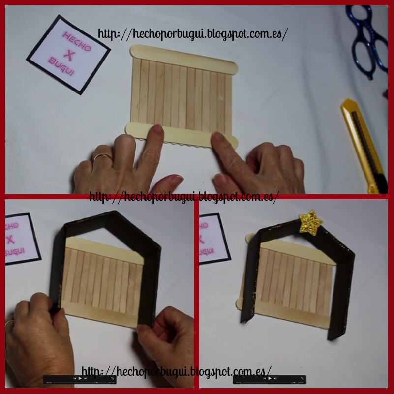Para el portal utiliza unos palitos de madera y un trozo de cartón.