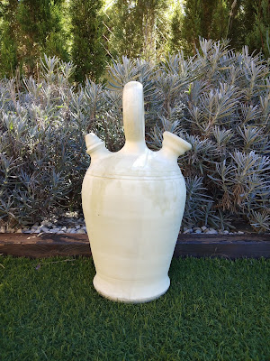 Me he servido de un viejo botijo. Aquí os dejo el antes y el después para que lo veáis y luego os explico el paso a paso.
