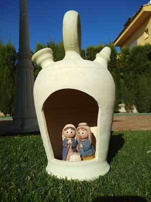 Bueno, para obtener este bonito nacimiento navideño podéis utilizar un botijo, al cual ya no le deis uso:
