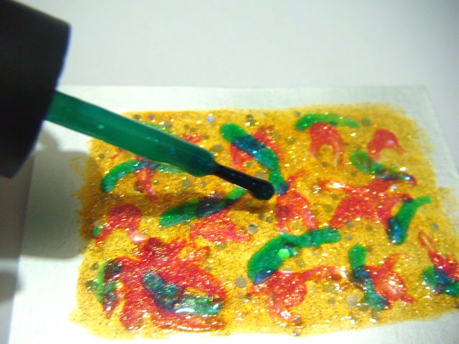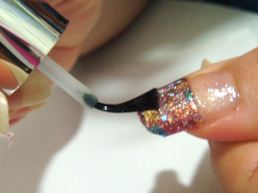 Paso 2. Dejamos secar y después cubrimos con un esmalte de brillos de tu preferencia.