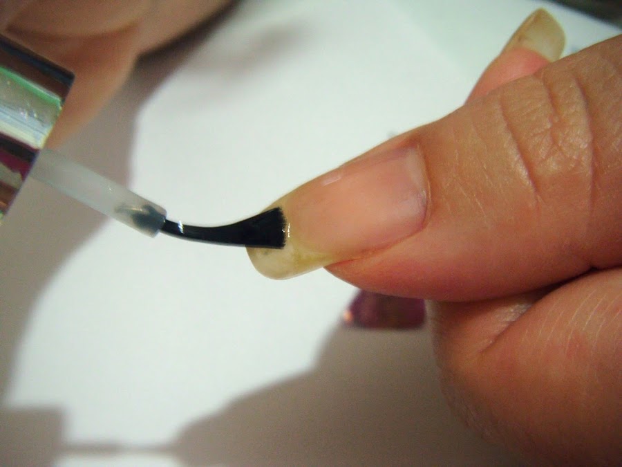 Paso 8. Ponemos esmalte transparente en la uña, que nos servirá como pegamento.