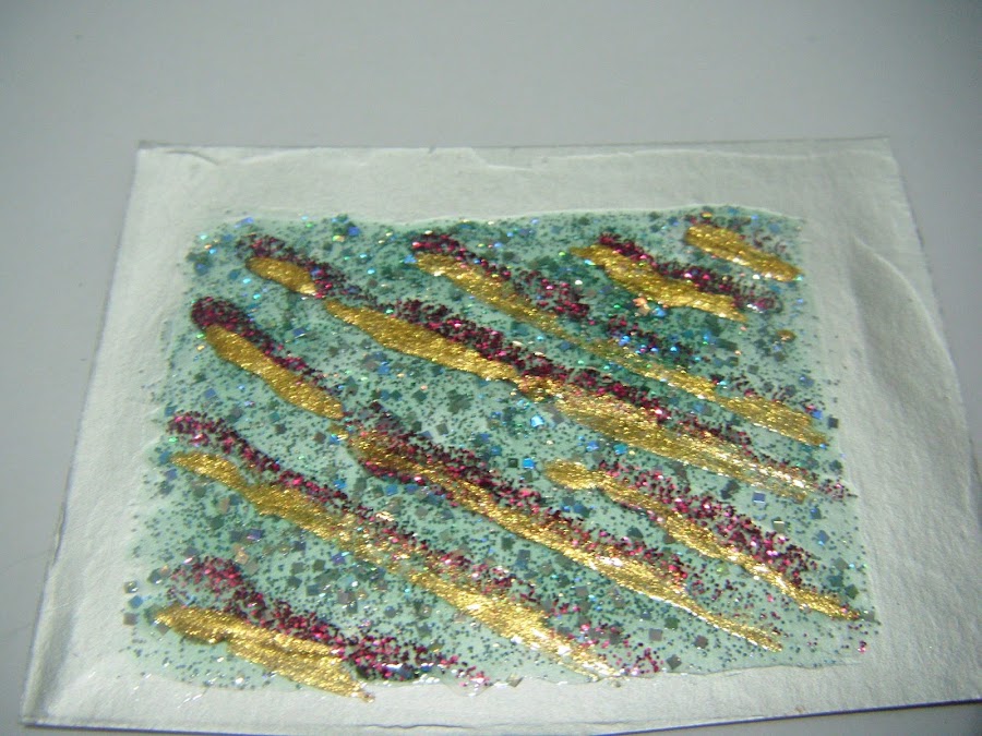 Paso 1. En un rectángulo de cartón de tetra pak vamos a poner una capa de esmlate transparente sobre toda la superficie, éste rectángulo mide 6 x 4 cm.