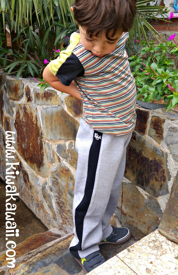 Ante la urgencia de pantalones de mi peque, repito patrón, que el tiempo últimamente escasea. Windy Day, de la Ottobre 4/2015. Para mi son los terceros, y la verdad es que siendo un patrón sencillo tiene su gracia con esas franjas laterales, que dan pie a múltiples combinaciones de telas y colores.